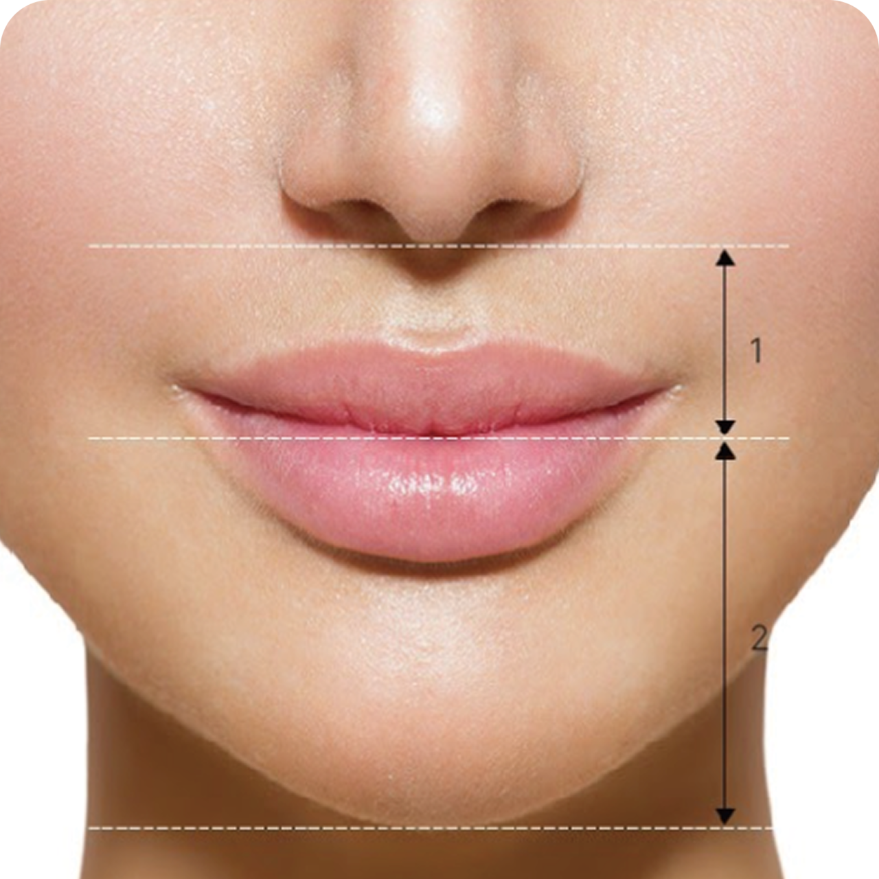 1:2의 비율일때 가장 얼굴의 밸런스가 자연스러우며