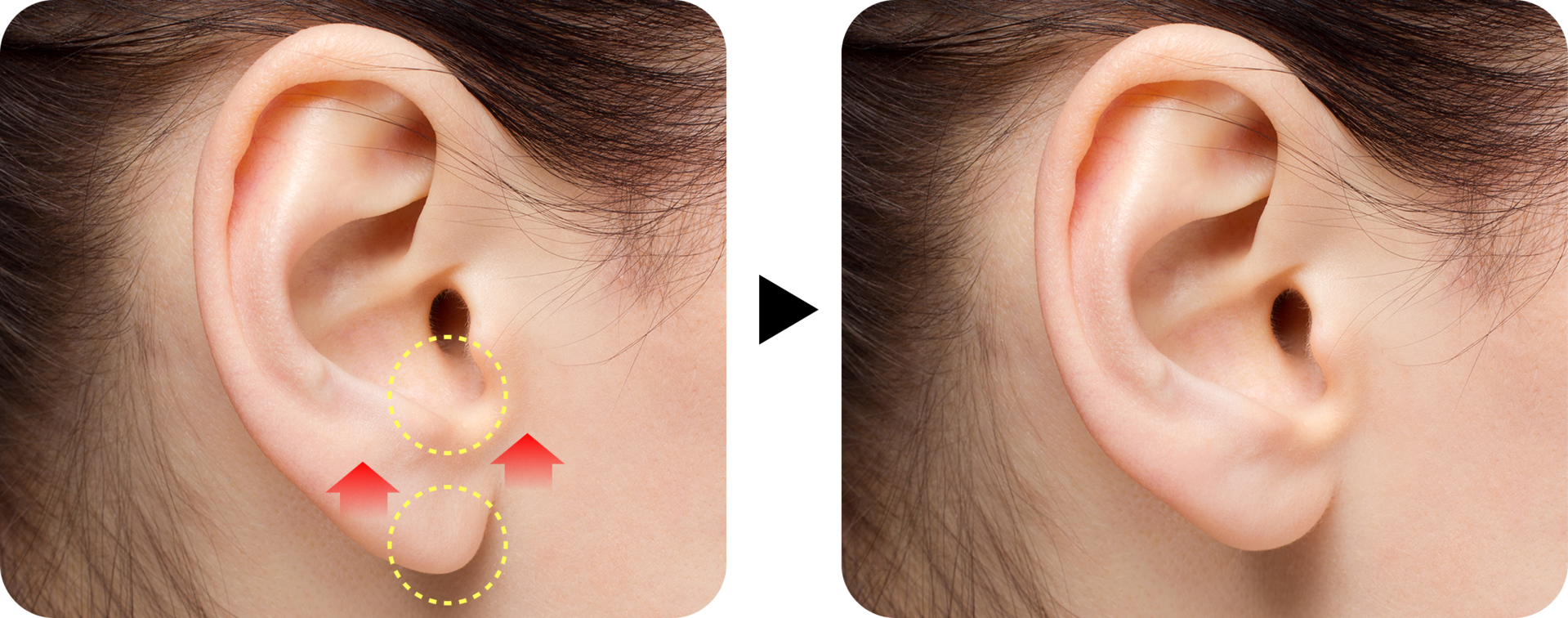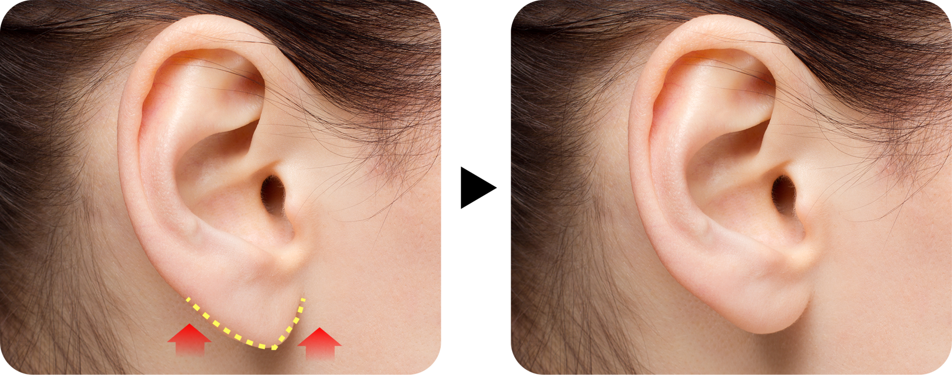 자연스러운 귓볼 형태를 갖게 교정합니다.