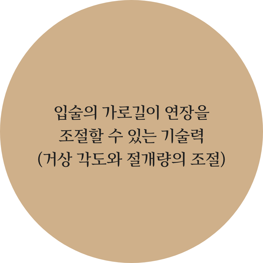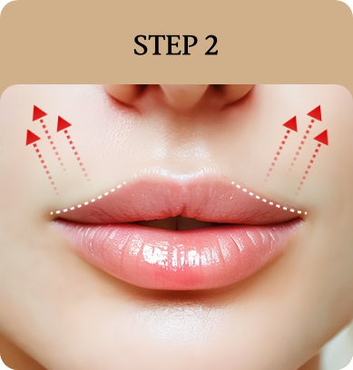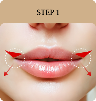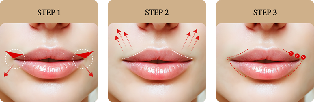 입꼬리 양 끝의 움직이는 근육의 방향을 재배치합니다.